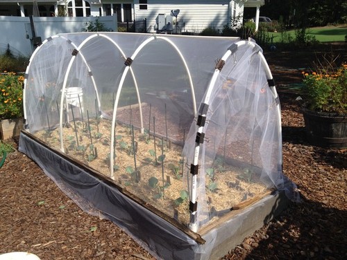 So my thought is to investigate some type of more open-weaved mesh or net, because the critters of concern (the pretty white butterflies that have me waving my arms around yelling "shoot them!") are fairly large.