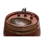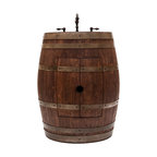 Reclaimed Wine Barrel Head End Table with Iron Base