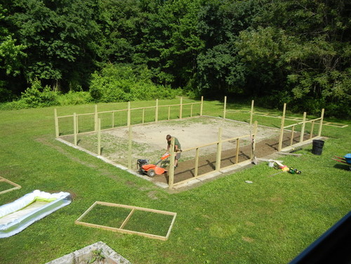 First, the posts are all 8' 4x4. Once sank 2' deep you have 6' above ground. We spaced the 4x4 posts 8'1" apart and built framed panels which are to be removed when we want to till. The frames are made from pretreated 2x4's, I went #2 grade to save money and just picked through whatever they had when I went to Home Depot every time I went (we are remodeling our house and are there very often anyway).