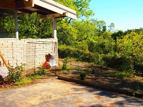 I now have a cluster of 8 cages that offer more protection than a single cage. They go all the way to the right side of the photo. As you can see, they are not as obtrusive as a fence and no gate is required.
