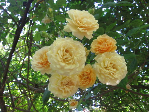 Austin's need afternoon shade: Golden Celebration, Glamis Castle, Abraham Darby, Sharifa Asma, Heritage