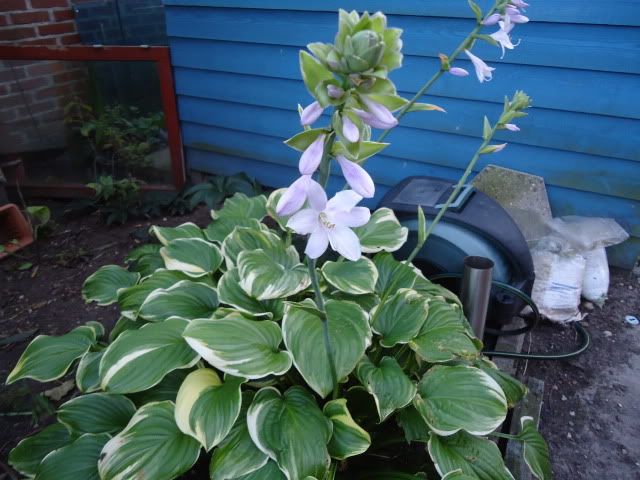 Hosta Fragrant Bouquet. After 4 years of leaves, it surprised me with flowers, opened September the 30th! It does smell nicely of lilacs.