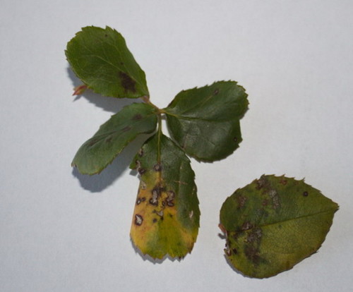 These are a couple of the more badly affected leaves from my new just breaking into growth bought as a grafted bareroot Mr Lincoln. Its been awfully wet here, and temperatures havent really got past 18 C yet (currently about 14 C) A few of the older plants do have a bit of blackspot on last years leaves, but all the new ones are so far just looking green and healthy, barring the odd aphid.