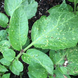 Can't say without seeing them but Google images of 'leaf edema potato leaves' and see if it matches.