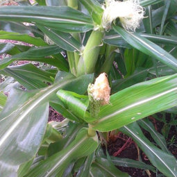 Corn is normally planted in block squares, not long narrow rows, for very good reasons. That would be easy to do in your layout pictured above. So why try to force it away from the norm?