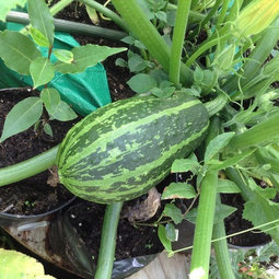 There is also an early white bush scallop (its an heirloom) that would be full sized with big leaves by July if planted now-and the squash is delicious.