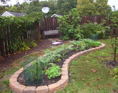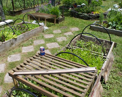 a pic...from last year. My beds are cleaned up in the fall and covered. Ready to plant in the spring. Salad beds get planted thick, less weeds. veggie plants that need more room get mulched with straw, again no weeds. I only have the weekends to tend my garden. No time for weeding, just picking.