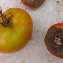 They will not correct themselves. You have blossom end rot, due to lack of calcium. Get a soil test first. Lime should be added a few months before planted and tilled in if reccomended. Uneven watering can cause it too. I just pull those fruits off and toss them on the compost pile. We get alot of rain during the summer here and it throws things off. Also I read to crush up several egg shells and put them around the tomato plants to add calcium.