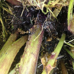 Cut off any flower stalks that appear. If left on, the rhubarb will get woody.