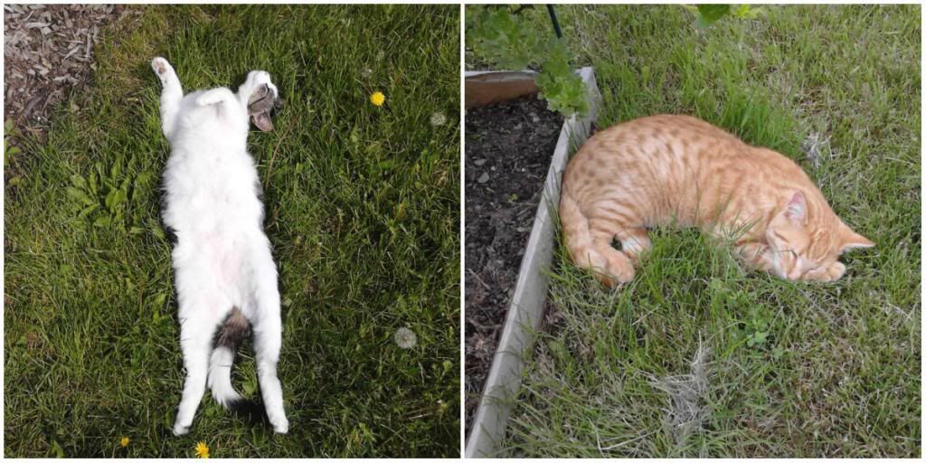 I've got a couple critter catchers in my yard. They are pretty good at it too... when they aren't sleeping. They technically aren't my cats but they hang around a lot (their owner lives across the street). Daphne on the left (she likes being upside down for some reason), Simba on the right.