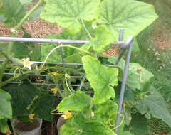My cuke still has new growth and has put out a bunch of blooms and 2 cucumbers developed.