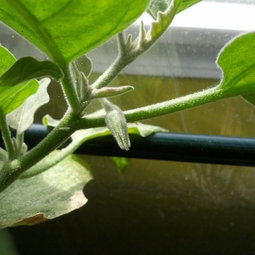 Most of the affected leaves are new but I do see some damage at the edge of the older leaf in the center of this photo