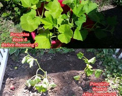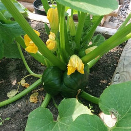 Here my two plants are doing great. 1 well developed mini pumpkin, and there are 2 more on the vine. Not sure if it pollinated or not, I know I have male flowers but haven't seen them open.