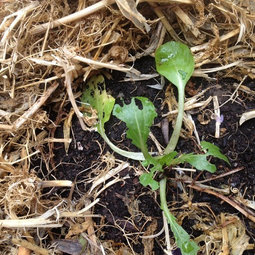 One thing i noticed though -- no mulch. After you finally thin down to one plant per 18", you'll probably want to lay down 2-3" of mulch. This will help greatly with keeping the soil moist and cool throughout the coming hot season.