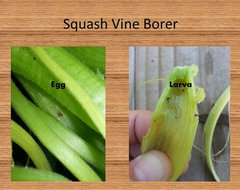 Look for the eggs and pick them off. The eggs are brown little round things that can be anywhere on the plant, but more often on the stem. Also, look for holes in the stem. The larvae is very small at first. I have pulled some out of my zukes this year that were barely the size of a grain of rice. They eat and grow and destroy their way down the stem!