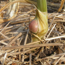 "Adult emergence occurs at approximately 1000 degree days (base 50F with a Jan 1 biofix) in the early summer. Use 950 degree days as the time to begin monitoring plants weekly for initial signs of the borer's frass at entrance holes in the stems. This usually corresponds to mid June as the start of the adult flight."