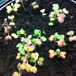 I have found that the deeper I plant the newly germinated sprouts, the more likely they are to emerge without the seed shell sticking the cotyledons together, or with both cotyledons still encased in the seeds. (Helmet heads.)