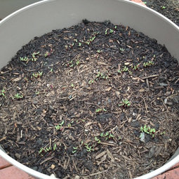 For future reference, when using round containers row planting isn't the best use of the available space.