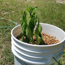 Friggin birds. They steal so much stuff! Lately they've made off with all sorts of peppers. Their favorite thing is to pick the leaves off of my pepper plants, twirl them for a few seconds and then drop them. They've also shredded many eggplant leaves and dug up all of my watering basins. Thanks birds!