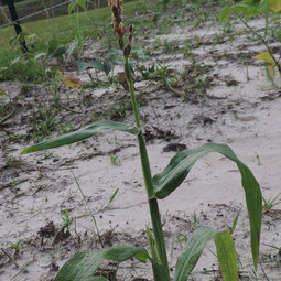 Is that what that is - sandy soil? I thought at first it was snow. I'd be amazed if that soil could grow much of anything but yeah, that corn is definitely not normal. It is severely nutrient deprived and very likely will not produce anything. Is it all like this or only this one plant? Where are you located geekella?