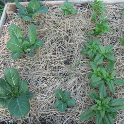 this years garden includes , 3 types of tomats , red cabbage , cucumbers , hot peppers sun flowers and herbs .