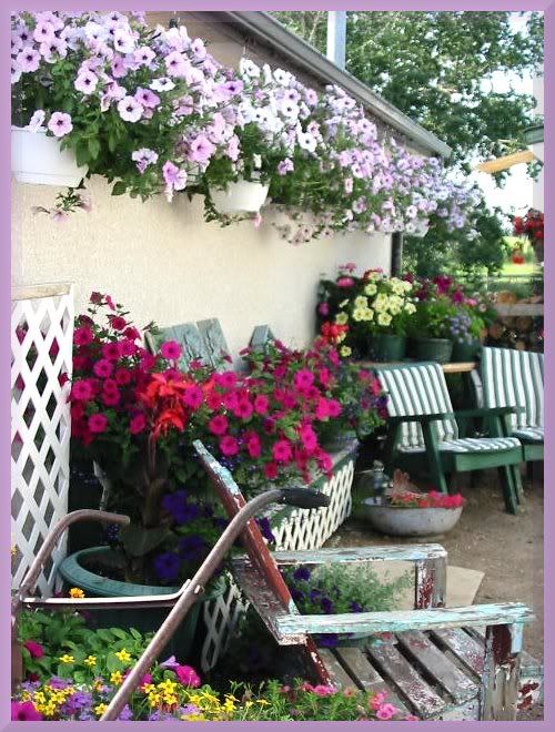 | just when i was looking for some inspiration on how to display my plants this year on my deck. you did a great job and you are giving me so many ideas on how to enhance the view by elevating plants with tables and such! |
