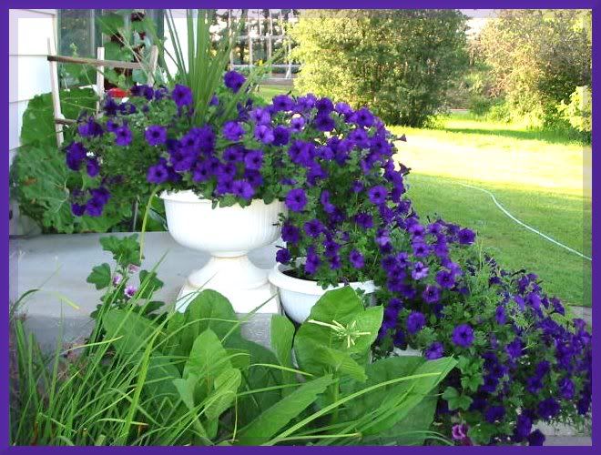 | I bought Blue Waves because of your pictures. I'm not disappointed. Mine aren't as gorgeous as yours, but they're filling one hanging basket and are the trailing plants in a big pot. Thanks for the idea. Sally |