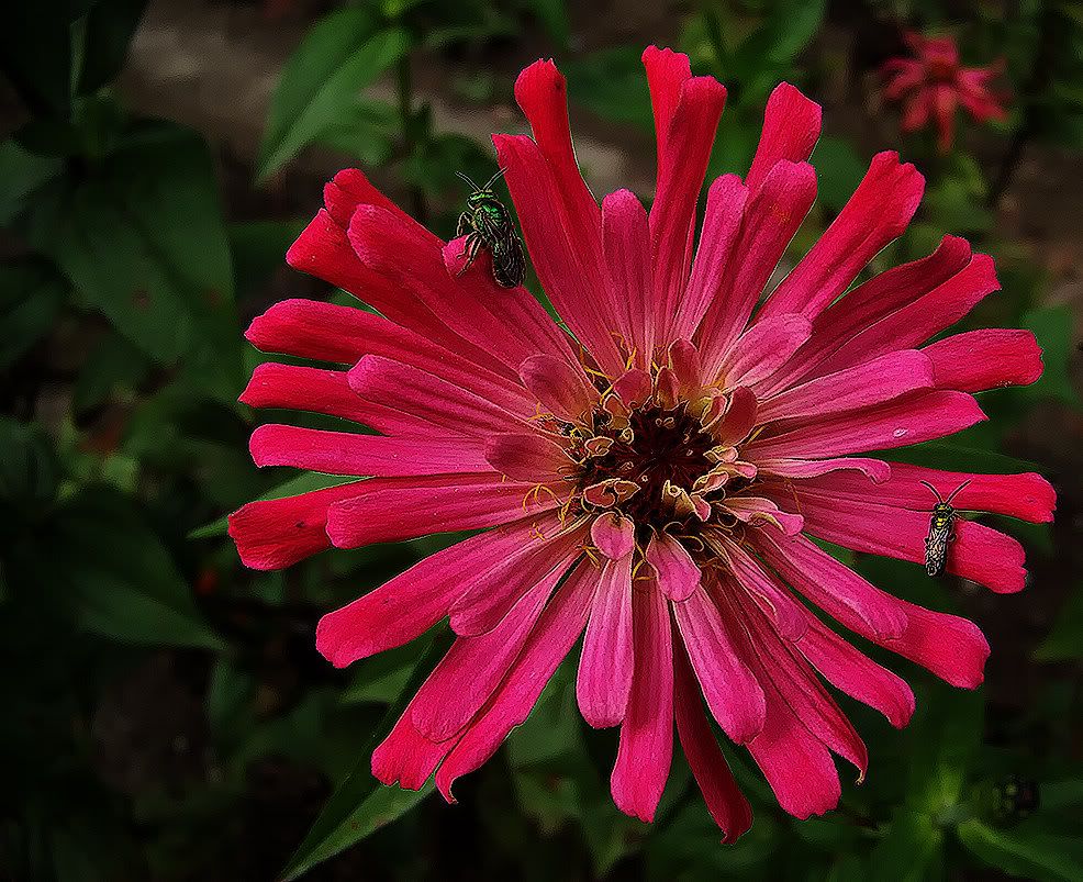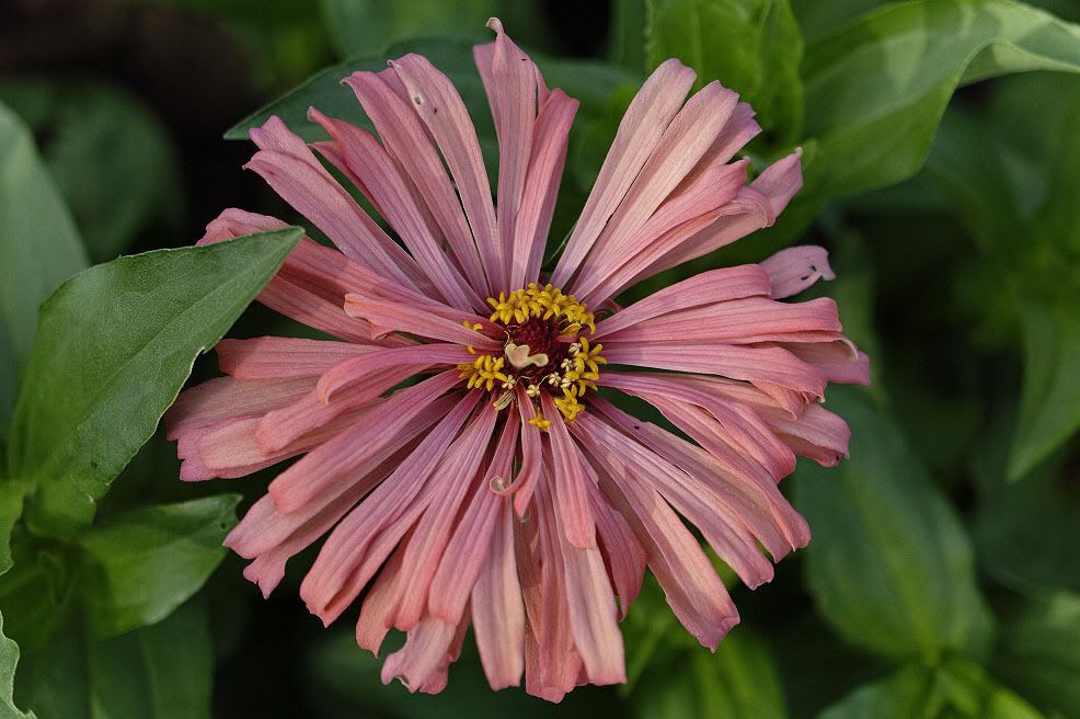 | Hi WoodNative, "My space is somewhat limited on my little north-facing lot with only a small area that is sunny and good for zinnias......but I usually grow a nice little patch there." There is a "bright side" to a limited growing space. It keeps you from over-committing how many zinnias you grow, and with a smaller number to take care of, you can take better care of them individually. And take time to enjoy them individually. A group of zinnias form an interesting little ecosystem. Hand-picking insect pests is much more feasible with a smaller zinnia population. And they need less water and nutrients and less time for their care. And, even in a small population, there is always the chance that something really unusual and nice will appear. ZM |