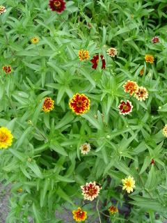 | ZM, Your indoor set-ups must lift your spirits as soon as you enter the room! They surely seem like a breath of springtime to me! I'm amazed you go from seed to flower in five weeks! For me outdoors, the first flowers usually show up about 7 weeks after sowing. I think I will try a flat of seeds just to see if I can get some plants flowering indoors as you do. I have Physan 20 now, which I think will be a huge help in controlling fungal growth. But the plant growth regulators (to reduce height)! Wow! It sure would be nice to be able to purchase something in "trial size." Are any of them available in quantities for less than $100? Just to add some photos to the site, below are examples of short zinnias of violaceae, marylandica, angustifolia, tenuifolia, and haageana species. I don't like them so much as the larger flowered plants, but they do have a charm of their own with almost unlimited diversity in appearance.