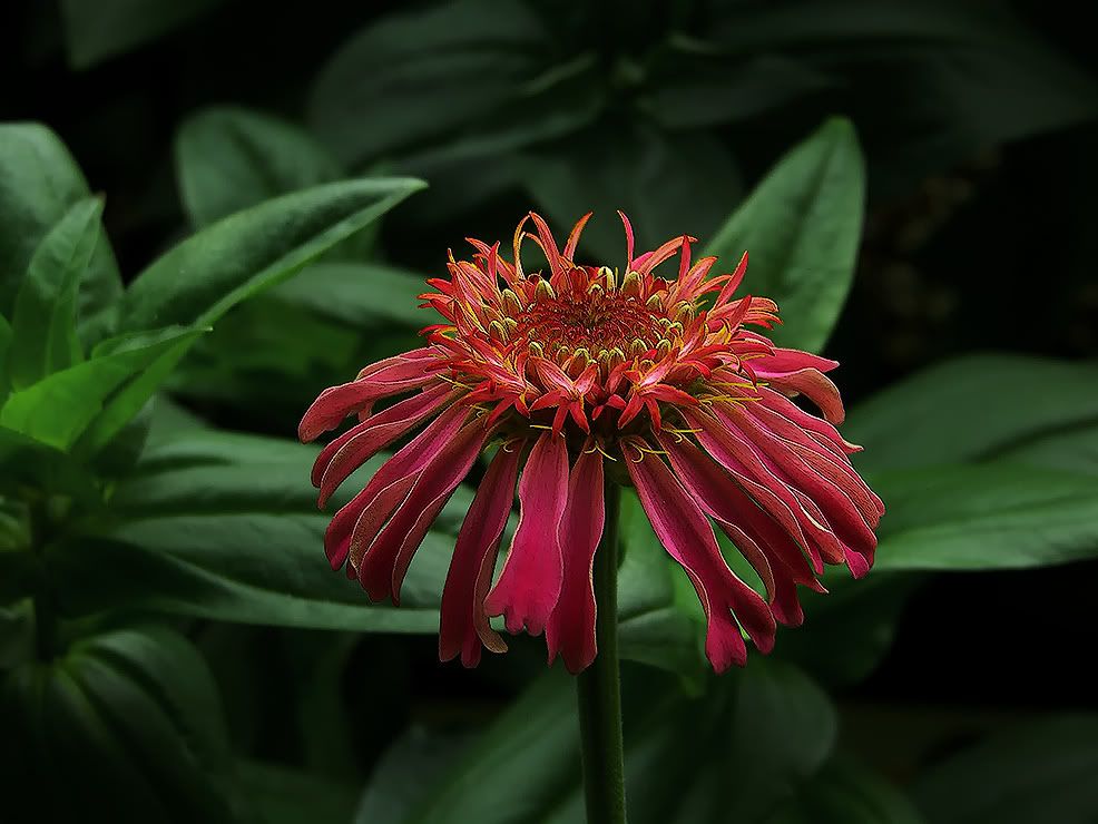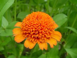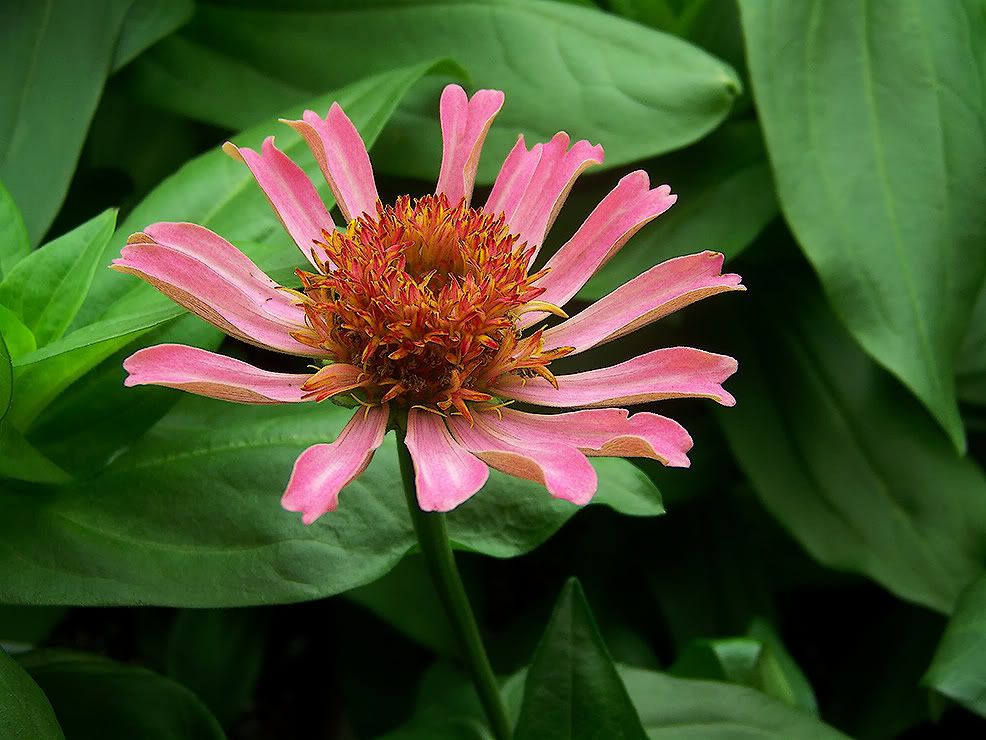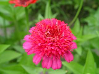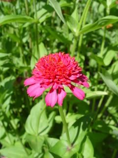 It has enough petal waviness to give the flower a frilly look that I find attractive, so I am giving it special attention. However, its leaves aren't wavy either. Hopefully I will get some more wavy-leaved zinnias in the not-too-distant future. ZM |