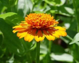 That picture was taken about an hour ago. I also have several single zinnias that look pretty good, but I have resolved not to breed any strains of single zinnias. If the plant were exceptionally bushy and floriferous I might make an exception, but I haven't seen any singles like that yet. ZM |
