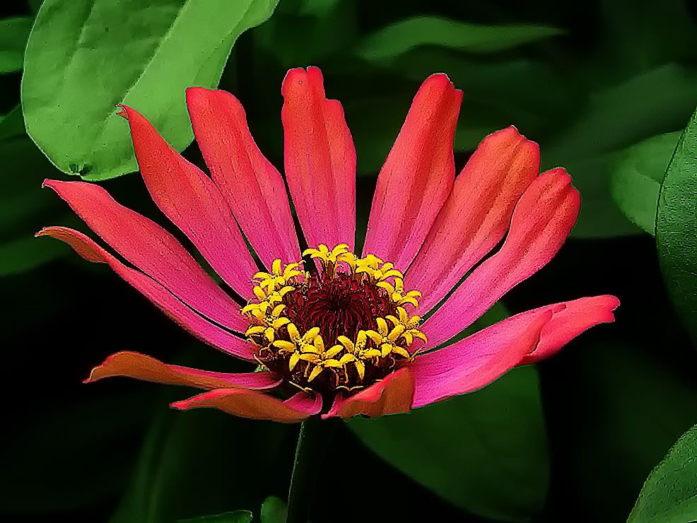 | ZM, I've been also reading about growth regulators like Bonzi and Sumagic. I guess it's a matter of studying general directions and experimenting a little to see what works best with zinnias. I think I would be on the conservative side there as far as usage goes, if I decide to try this (still thinking that over!). I notice the manufacturer of TopFlor is about twenty-five miles from my home. I will give them a call later today. Your pink flower is nice. What are the parents? Is that a cluster of chaffy scales in the central part? I collected and separated seeds from all of the various species of zinnias in my microgarden. I did attempt to cross several of those with taller violaceae species, (and collected those seeds separately) but I also want to see if any crosses occurred naturally among these species that were grown so closely together, so will look for that when I grow out the seeds this summer. JG |
