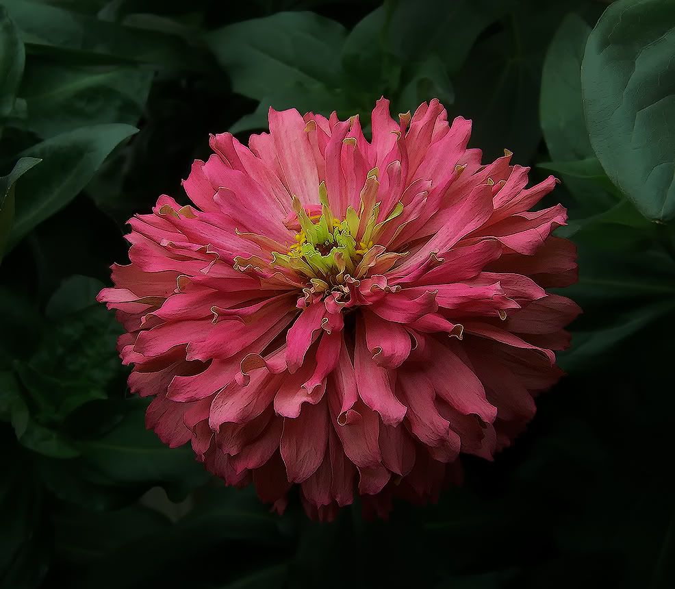 | ZM, The marbling effect would look great if you could get that to work in many colors, or actually, even just one color. Your pink flowers are very nice. The prettiest marbling I've ever seen in a flower is in the 'Honky Tonk Blues' iris. I would put a photo in here, but I don't see anything online that comes close to doing it justice, and the pictures I've taken are buried on a CD from years past. But, back to zinnias, it would be great to develop a strain with marbling. I also do like that last flower you've posted. A bouquet of those in several colors would I've ordered seeds, and more seeds. I think I've got enough to grow an acre, at least. Wish I had the energy to do that! But I think I will come close to 1/4 of an acre... JG |