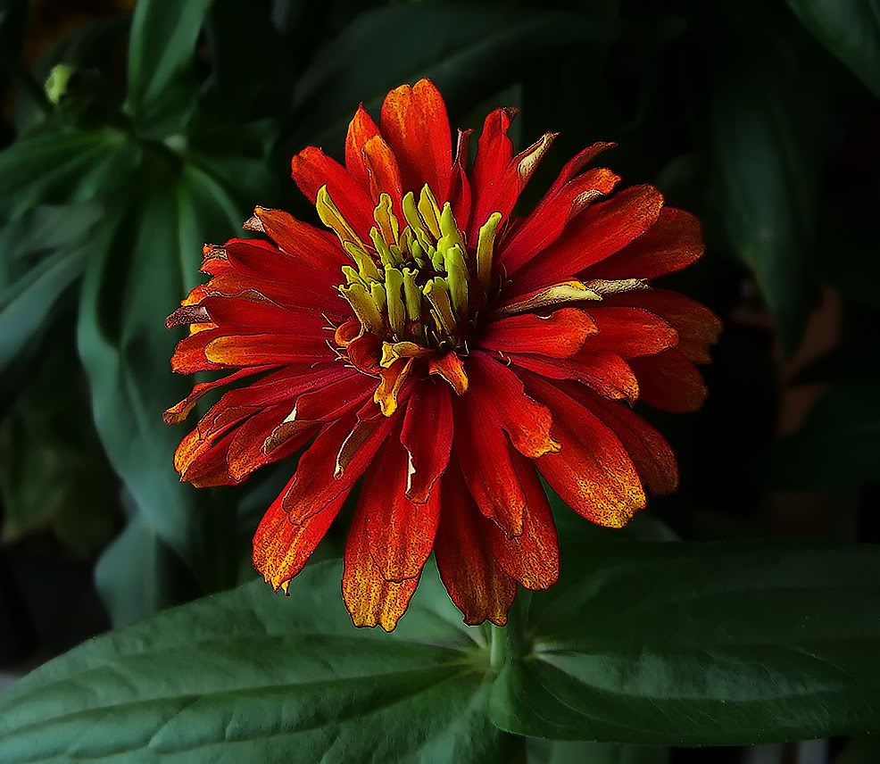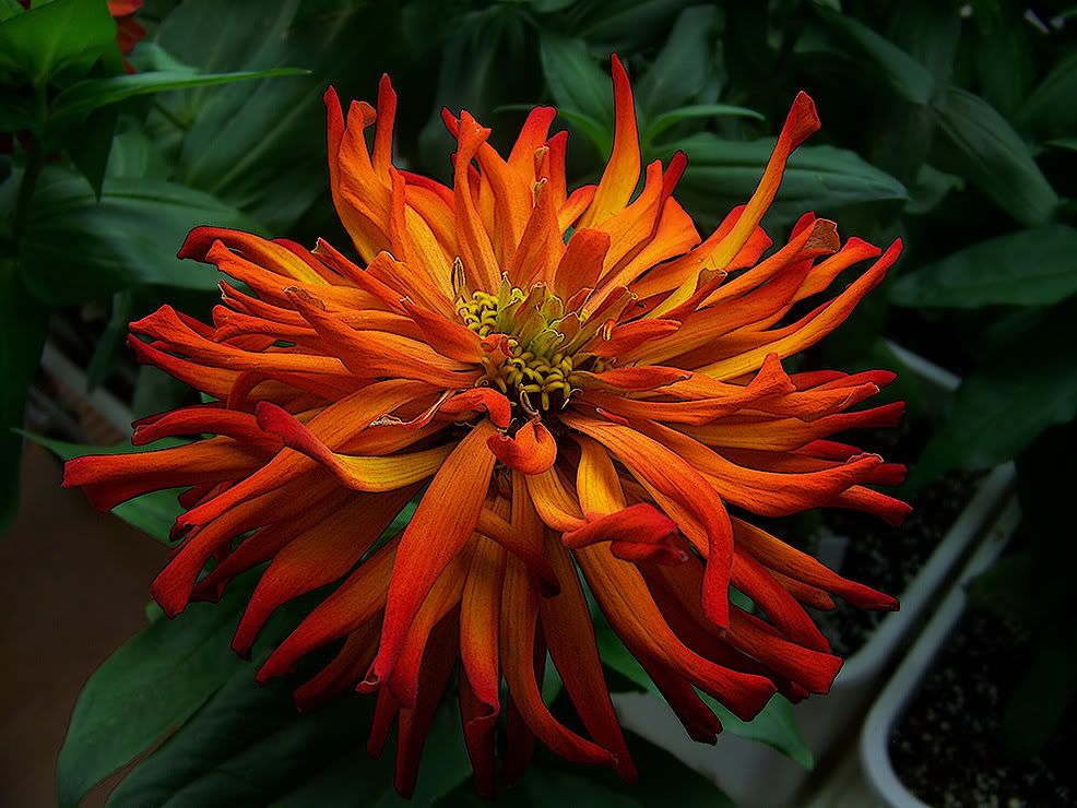 | JG, I am still using the same Kodak Z712 IS camera, usually in its "Flower" mode. The lighting was high key in some of the recent photos, instead of the low-key chiaroscuro lighting that I have a quirky preference for. I still intend to get my very own digital SLR camera, but not until I see what the next releases from Nikon will be. I have made a lot of progress in my indoor zinnia growing techniques, and my present indoor project gives me a lot of pleasure and satisfaction. But I think there is still room for improvement. I need a finer touch in my use of plant growth regulators and I am considering the use of HID lighting for some of my larger plants this coming Winter. I am also concerned that the use of municipal tap water, even after filtering the chlorine out of it, can cause a build up of salts in my growing medium. They say you shouldn't top-water zinnias, but bottom watering seems to give a build-up of salts, while top watering can tend to flush out some of the excess salts. I am going to look into the costs of filtering everything out of the municipal water. If I were just growing a few African Violets, I would use one-gallon jugs of distilled water from the grocery store, but that isn't practical for my zinnia project. At least, when I transition to outdoor gardening, rains will be helpful. ZM |