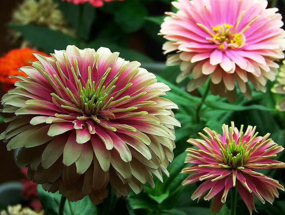| ZM, Your flowers are gorgeous as always! The form (not color) I had mentioned earlier that I would try and find something about the origin and development of the scabious form of zinnias. I questioned several sources, and from Andrew Tokely, the Horticultural Manager of Thompson and Morgan, I found that "The Scabious Flowered Zinnia was achieved by Selective breeding over a number of Years. On (outdoor) zinnia pollination, Dr. Stimart writes, "It is my understanding they can be wind pollinated to some extent, but the major is by various insects. I would bag the heads so as to exclude pollen completely." Thanks so much to the above sources for their help on questions we might share... Well, indoor planting time is coming soon! Outdoors, my peas, poppies, and lettuce are just beginning to emerge. JG |