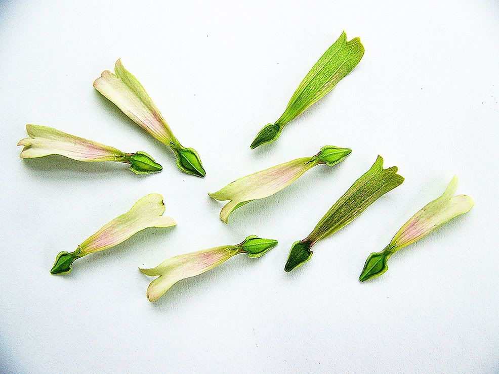 I prefer Tequila Lime to Envy, although Tequila Lime seems to be a rather unstable strain. I had a couple of singles, one of which also started out as a plan-of-three plant. The on-type Tequila Lime has a white center, as opposed to the greenish center of Envy. I wish I had a good all-white breeder right now to cross with my Tequila Limes, but I guess I will make do with the lighter colors that I have (a few pale pastels and ivory). I don't like those spoon-shaped petals, and I would like to cross these with something to give them a cactus or spider flower form. ZM |