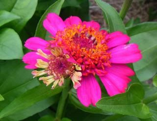 The lighting was bad when I snapped that and I think the picture suffered because of that. But the zinnia itself is a bit unusual. Maybe I'll get a better picture of it in a few days. |