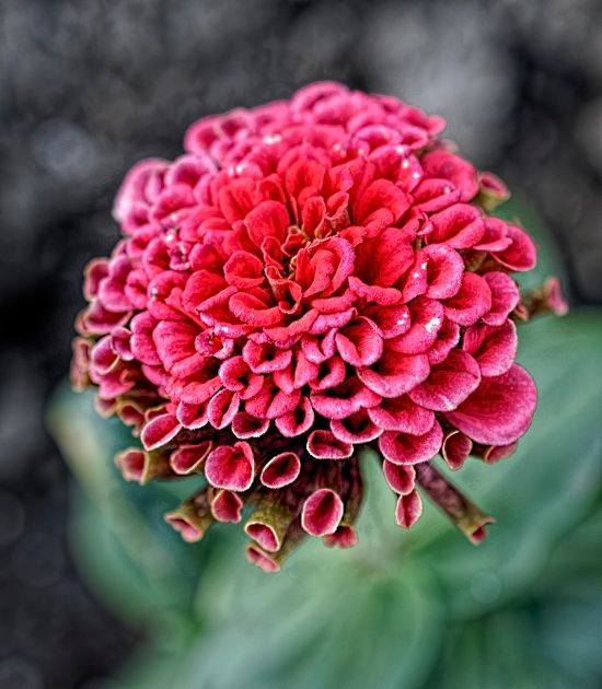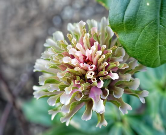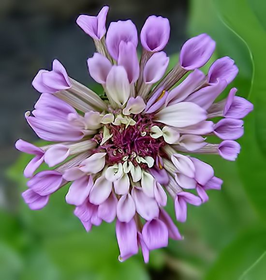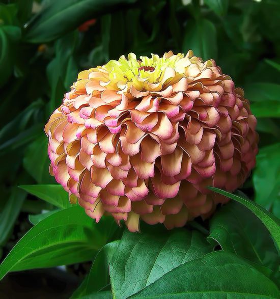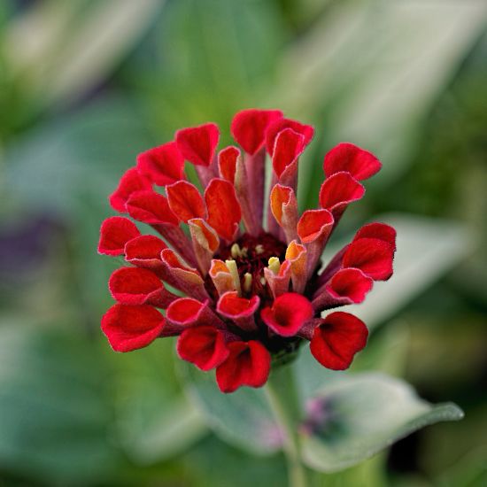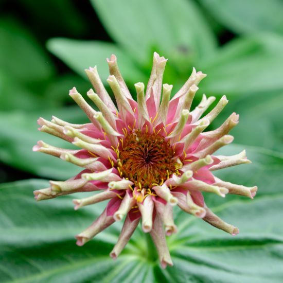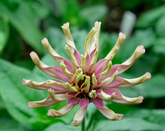 | Fabulous! I am new to growing zinnias this year and am amazed at the diversity of this beautiful little flower. Mine are outdoors and experiencing wet-weather fungus and Japanese beetle de-foliation but we are doing our best to have them last a bit longer. Here is a recent pic of a new bloom: |