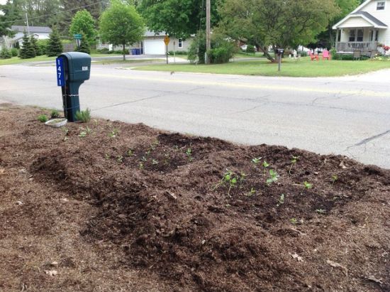 That looks like a good sunny spot for your zinnias, and with all that enrichment you have done for the soil, I have high hopes that you will get some great looking zinnias in that bed. That's a nice looking mailbox. |