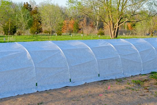 They were planted under the low tunnel the 6th and 7th of April. We had at least three killing frosts after that, but the tunnel kept them safe (except for some mole damage that is visible on the left side of this next picture).