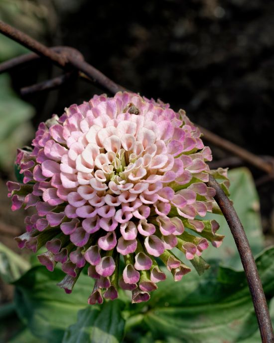 | Hello! I'm loving all the photos everyone is submitting! LKZZ, your zinnia patch is so bright and cheery! And you can save lots of seeds from it, too, for next year. Veggie, if you want to identify that little caterpillar, get a good close-up shot of it and submit it to bugguide.net, and you most likely will get it identified within hours. ZM, the deep pink/red flower you showed is gorgeous. You are getting such good colors! I almost forgot about those aster-flowered zinnias you had...they were classics. Wouldn't have imagined you would have crossed them with a tubular, but what a good idea! Well, many of the plants from the scabious seeds that I planted are starting to bloom, and I can safely say that I will be lucky to get 5% true scabious form. I saw the one pictured below, and thought it would develop into a nice example...but wouldn't you know?-- it has a "twin" very closely adjoined on the same stem, and of a paler color! Zinnias can do funny things. There are buds on most of my plants in two of my earlier-started beds...so am hoping to get more flowers soon. Thankfully, we had some rain in the last day. I was afraid we were headed for a dry spell. I'm hoping that the moisture will encourage the flowers.