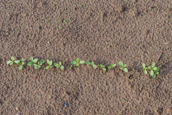 | Hi Martha and ZM, It looks like the winter sowing may give you flowers sooner...Martha, you look like you have incredibly rich soil there! The zinnias should appreciate that! By the way, on my computer, the pictures that you posted lately aren't right side up, but on my iPad, they are! ZM, your tunnel-raised zinnias are looking great! Besides getting flowers earlier, you can also have the luxury of planting when you want, earlier on. Sometimes in the spring when it is warm enough to plant, there may be too much rain to do it, and you have to wait for a dryer time. My seedlings (ones planted earliest) look like this now: I put down the seeds, then cover lightly with potting soil to make sure any hardpan doesn't make it difficult for plants to emerge. I am going to have to mulch between the rows before the weeds take off...will probably use leftover hay. JG |
