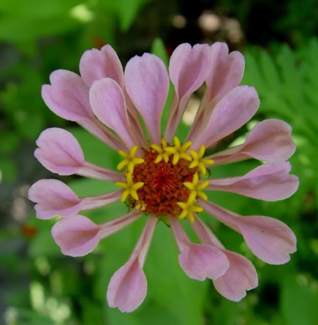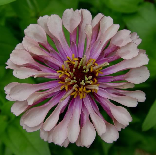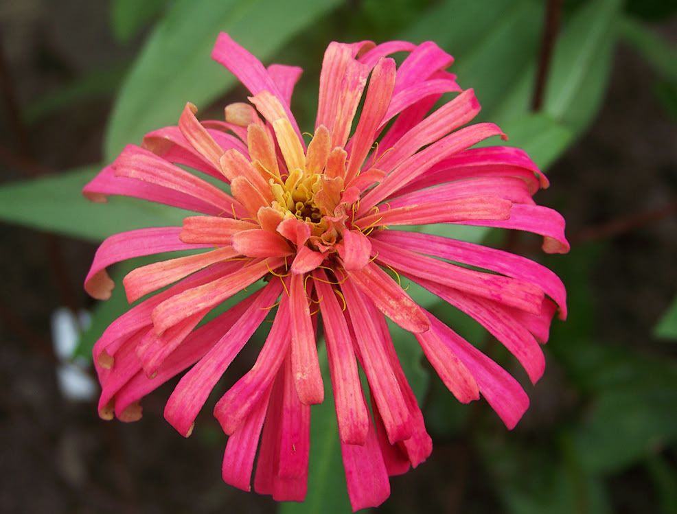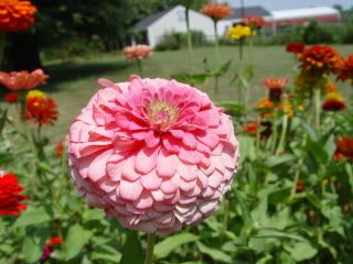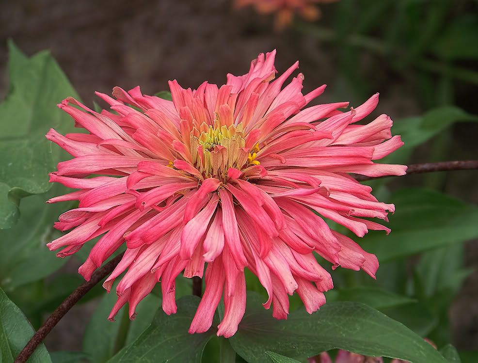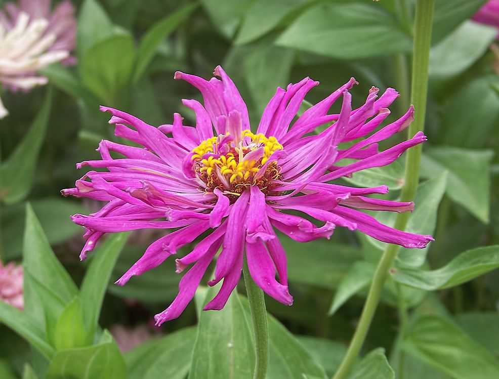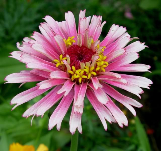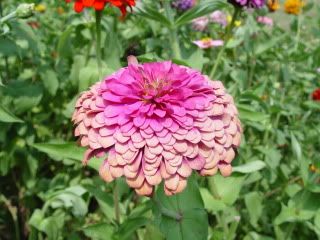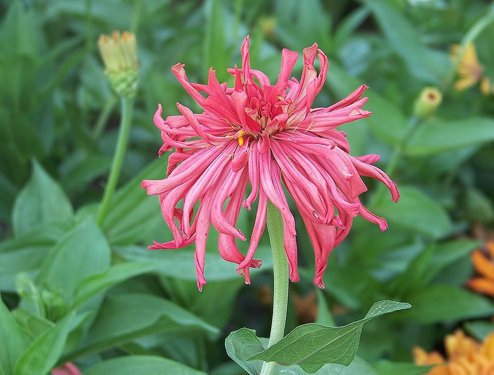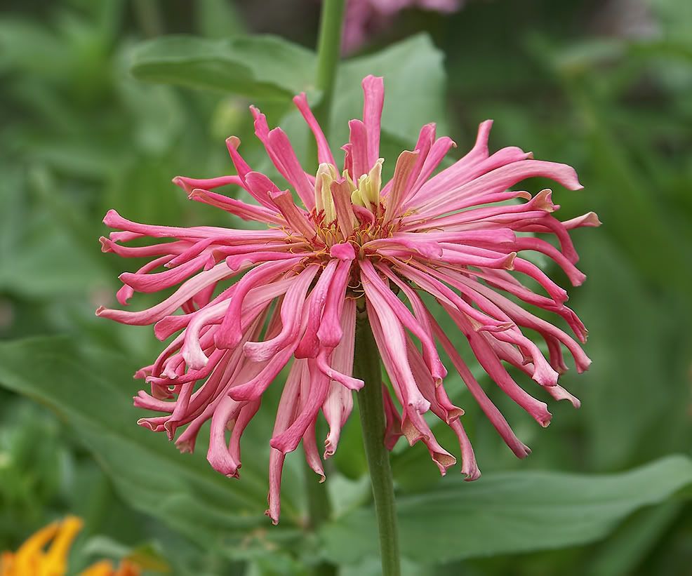 | ZM, I like the shape and length of the petals on your zinnias like the pink one above. I think you have quite a strain in that founded by the "dinosaur." Have you gotten any more "shaggy dogs"? I grew Esquisites last year, and I believe I see the influence of them on many of my zinnias, possibly even that