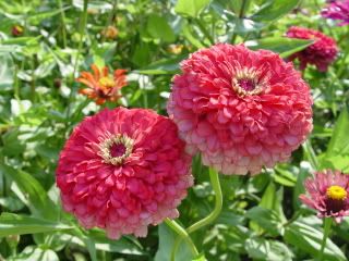 For everyone who has not yet raised a zinnia garden, there is another benefit. Lots and lots of butterflies come. I have seen twenty different kinds of butterflies visiting my zinnias this year!! JG |