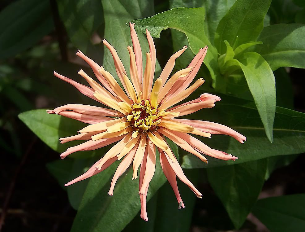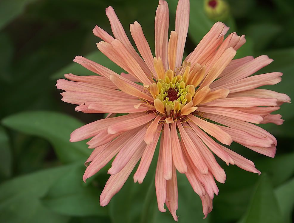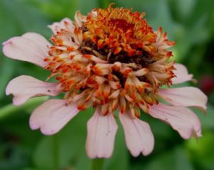 | ZM, It's interesting to see all the types of different structures in the central part of that last zinnia! The color is interesting, too--kind of a tan-salmon. I saw a cactus type today with that type of color. It, too, is, insect-bitten.