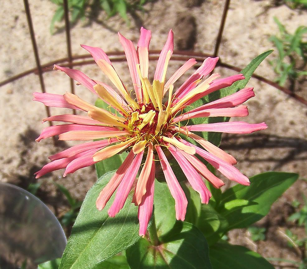 This zinnia, and several others that have been transplanted to the garden in my new location, was originally started indoors at our old location and moved here. |