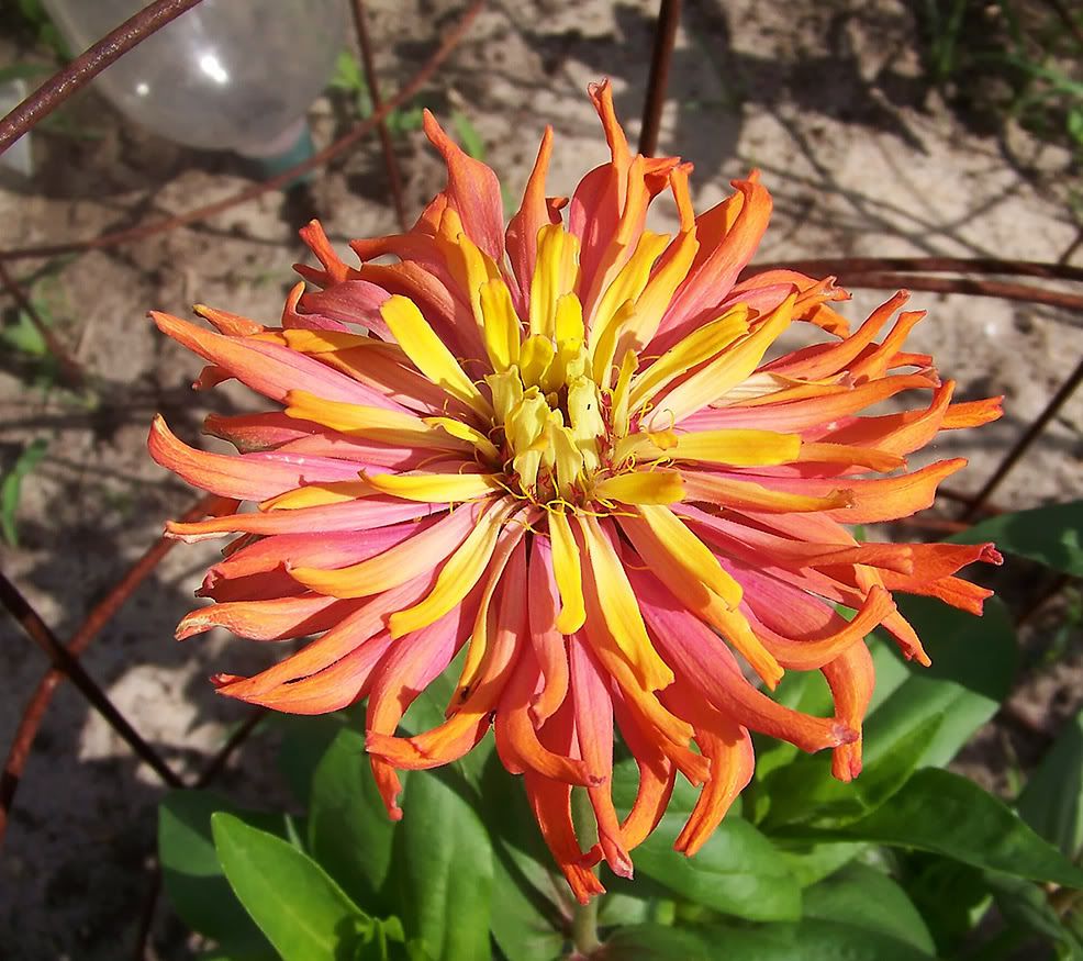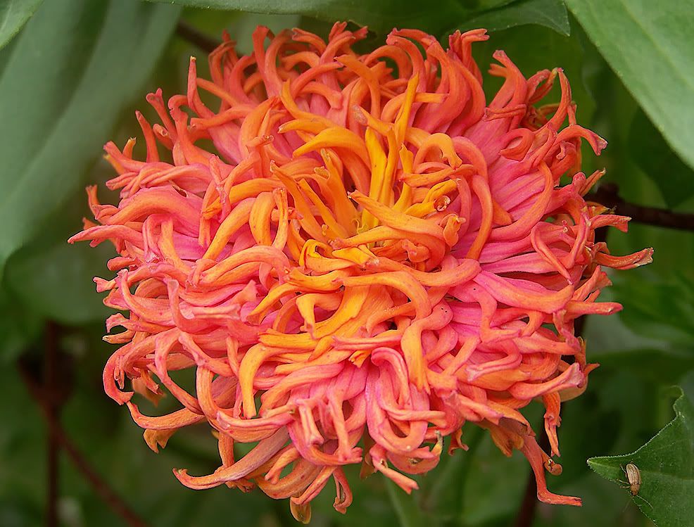 Several years ago I had an orange cactus zinnia whose petals hung way down. This is an old video frame picture of it.
