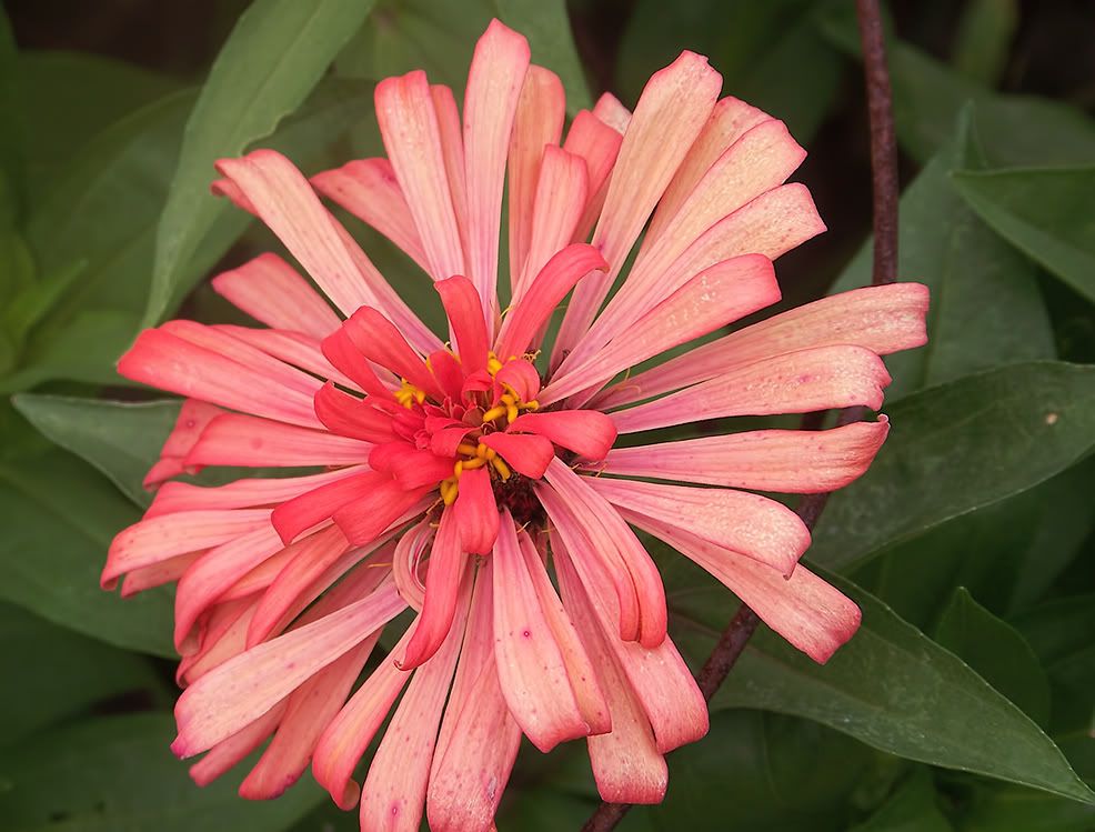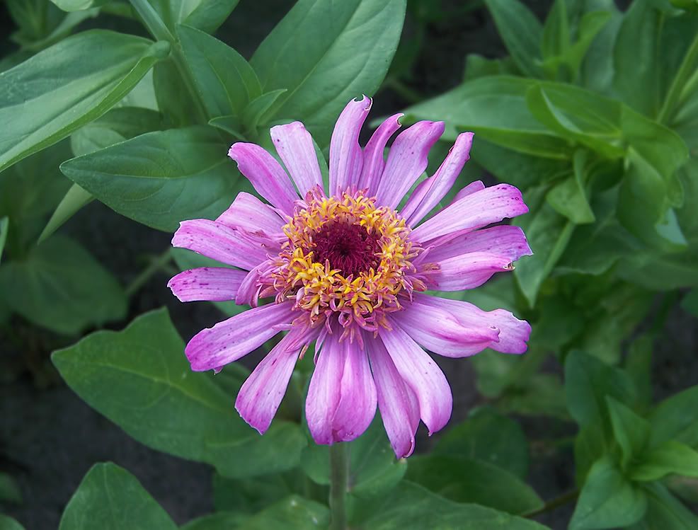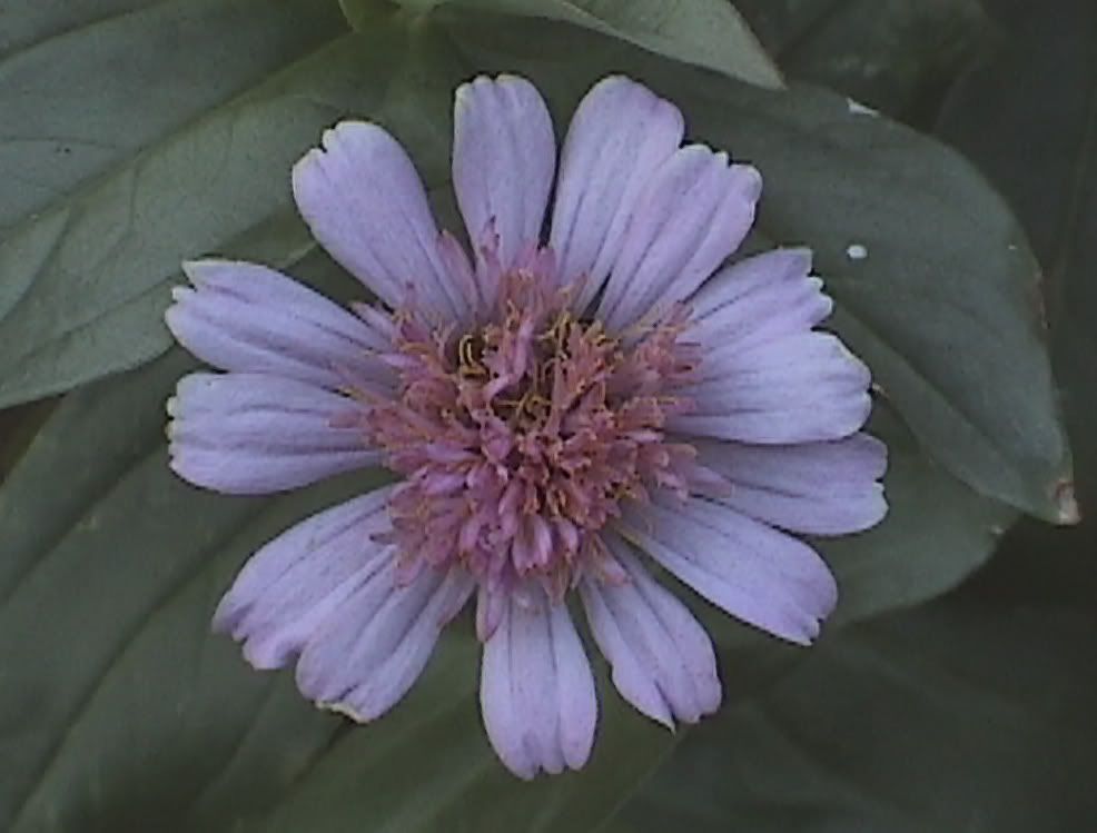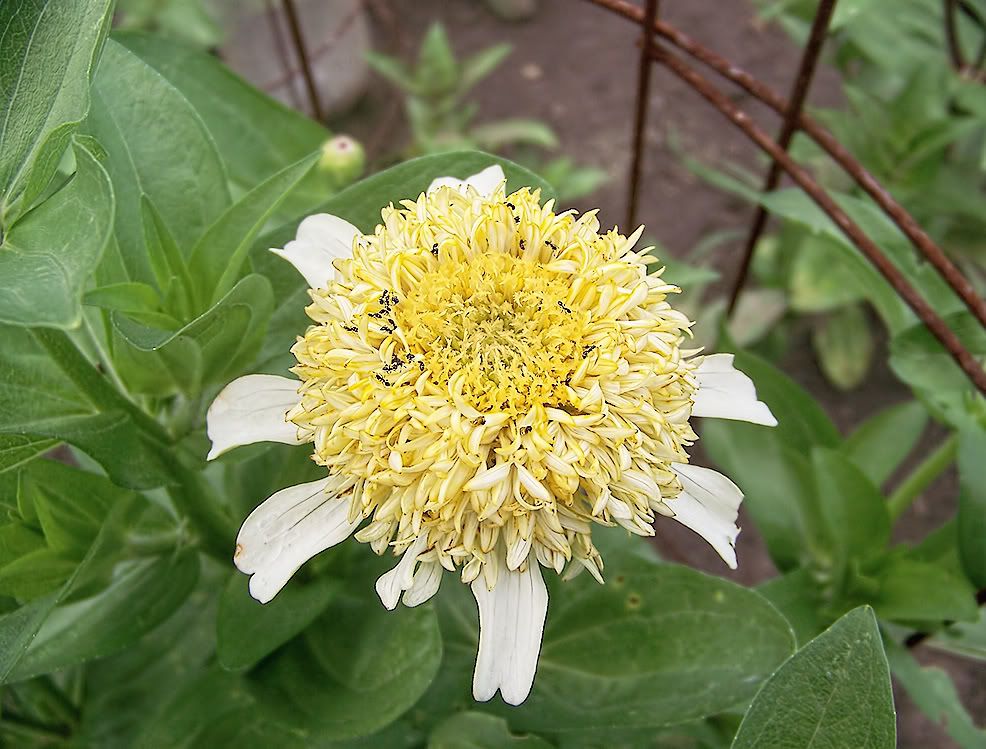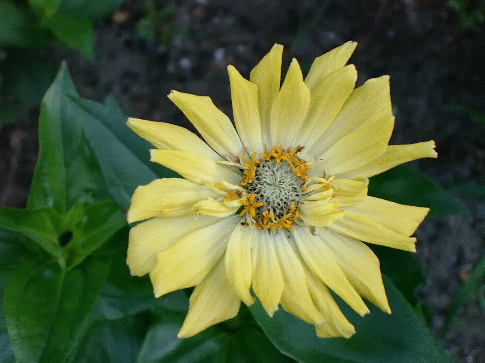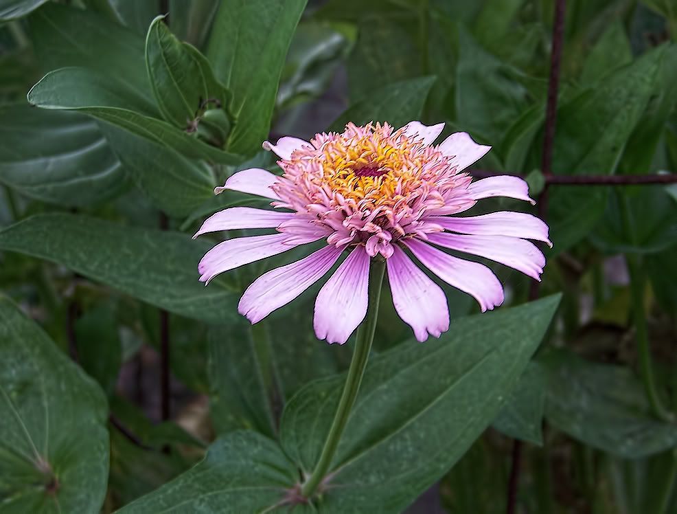 The flowerform on that zinnia specimen reminds me a bit of an aster. I guess I should spray them with Physan 20 in an attempt to control bacterial rot in this water-soaked weather. |