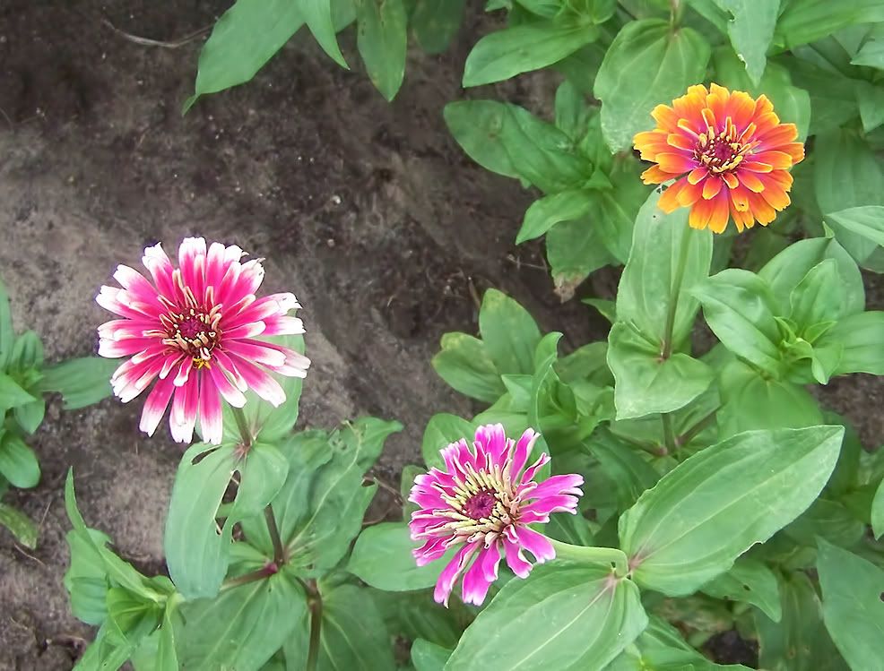| ZM, You are brave to be still planting in this heat wave that we have! The young zinnias will no doubt like it. And, I suspect you will see more scabious zinnias from your own seed than from the commercial source this year, such as you have shown with that last picture! At least, that is the case for me. I can see that about 30% of the seeds I harvested from randomly pollinated scabious flowers of 2009 are resulting in scabious flowers from a sample lot planted this year.