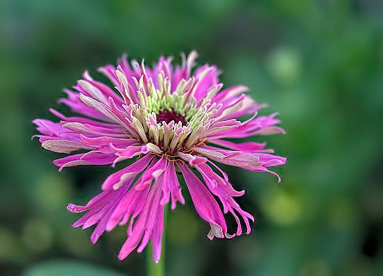 In just two days those petals have become very ordinary, and that specimen is scheduled for being culled. But I think you can get some unusual results by crossing your green zinnia with other colors. I have got to grow some greens and cross them. |